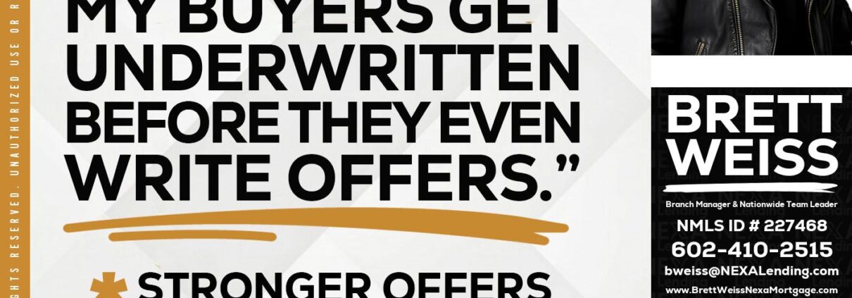 Hi, my name is Brett Weiss. I’m a Loan Officer with NEXA Lending LLC., offering personalized mortgage solutions, fast customized quotes, great rates and service with integrity.