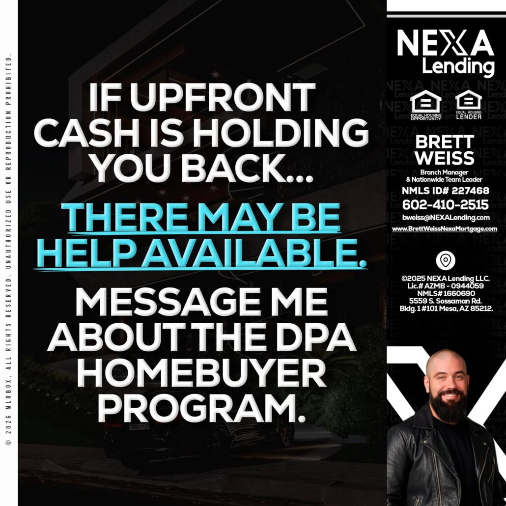 Hi, my name is Brett Weiss. I’m a Loan Officer with NEXA Lending LLC., offering personalized mortgage solutions, fast customized quotes, great rates and service with integrity.