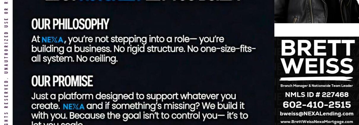 NEXA INSIGHTS - Brett Weiss -Branch Manager &  Nationwide Team LeadHi, my name is Brett Weiss. I’m a Loan Officer with NEXA Lending LLC., offering personalized mortgage solutions, fast customized quotes, great rates and service with integrity.