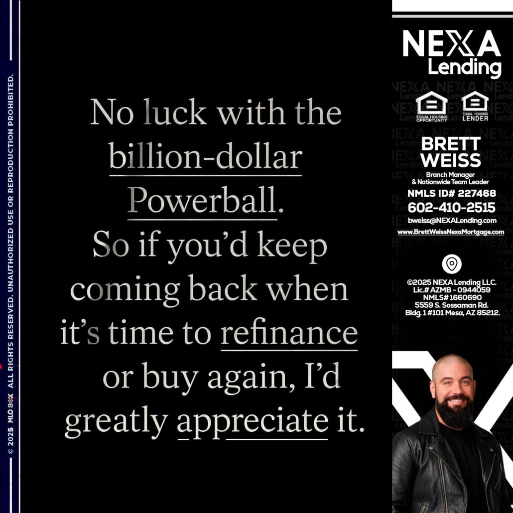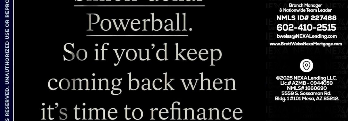 Hi, my name is Brett Weiss. I’m a Loan Officer with NEXA Lending LLC., offering personalized mortgage solutions, fast customized quotes, great rates and service with integrity.