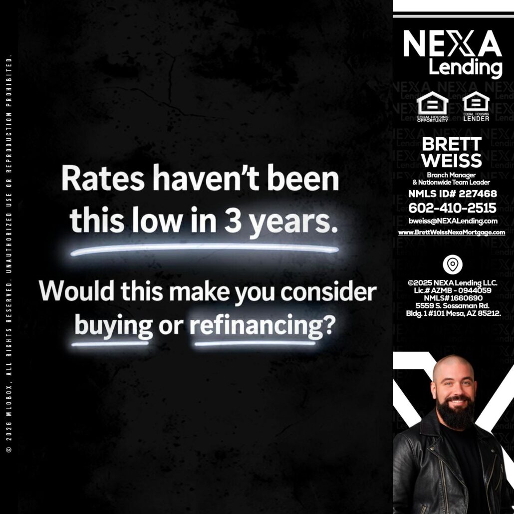 Hi, my name is Brett Weiss. I’m a Loan Officer with NEXA Lending LLC., offering personalized mortgage solutions, fast customized quotes, great rates and service with integrity.