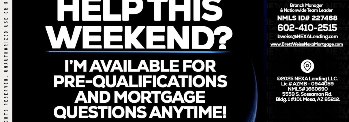 Hi, my name is Brett Weiss. I’m a Loan Officer with NEXA Lending LLC., offering personalized mortgage solutions, fast customized quotes, great rates and service with integrity.