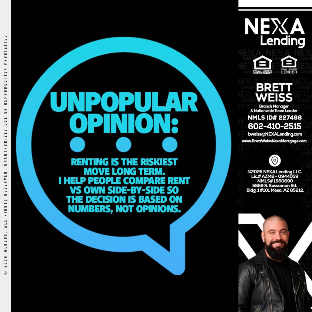 Hi, my name is Brett Weiss. I’m a Loan Officer with NEXA Lending LLC., offering personalized mortgage solutions, fast customized quotes, great rates and service with integrity.
