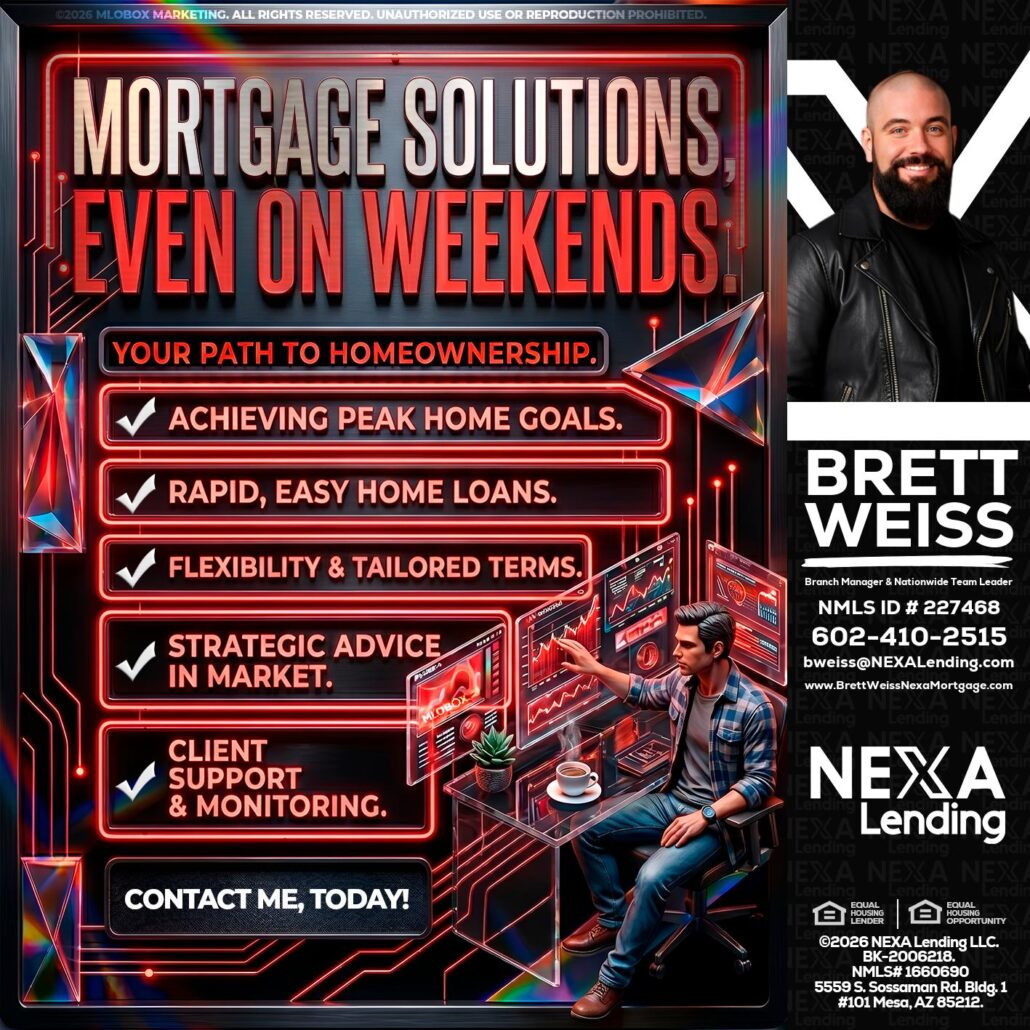 Hi, my name is Brett Weiss. I’m a Loan Officer with NEXA Lending LLC., offering personalized mortgage solutions, fast customized quotes, great rates and service with integrity.