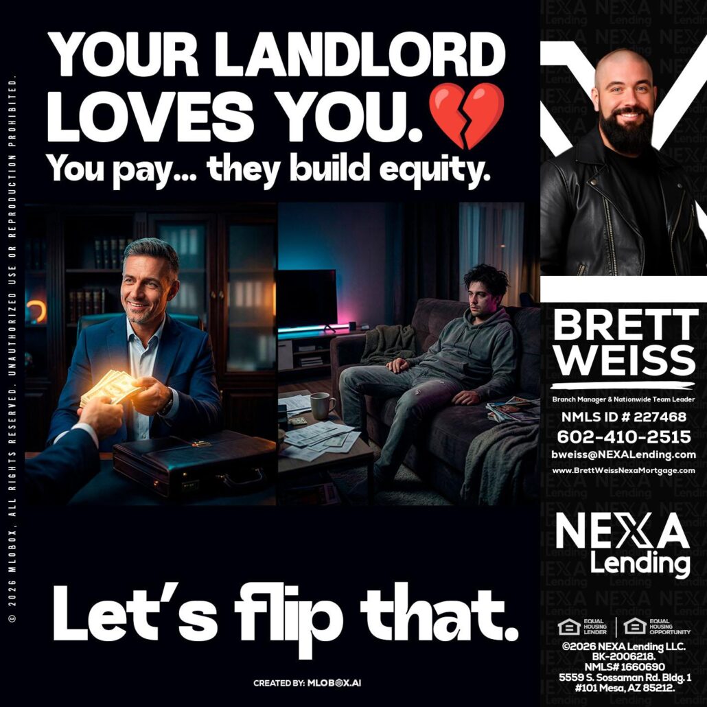 Hi, my name is Brett Weiss. I’m a Loan Officer with NEXA Lending LLC., offering personalized mortgage solutions, fast customized quotes, great rates and service with integrity.